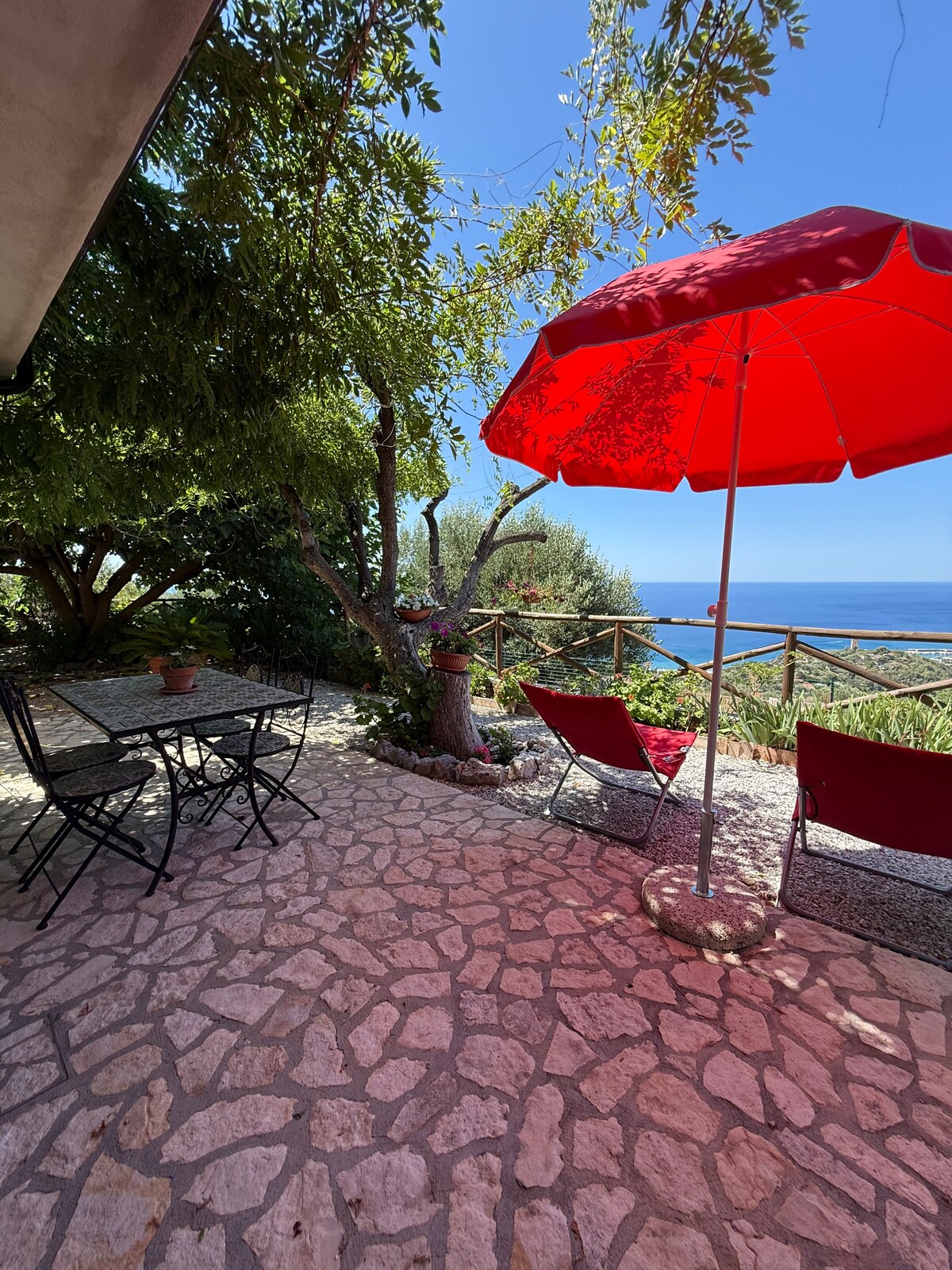 La nostra casa di famiglia di origine. L'appartamento è caratterizzato dalle belle cementine originali: è luminoso, fresco, ventilato, ben arredato e accessoriato. Comodo e tranquillo, con ampio e fruibile balcone a di 5 mq, vista e posizione esclusiva ed incantevole. Pratico parcheggio esterno, non custodito ma sicuro (caserme Loc.Pol/Carab), a 100 mt. Il cuore del paese con negozi, markets, bar e ristoranti è raggiungibile a piedi in meno di 5' e le spiagge, in auto, in 15'.