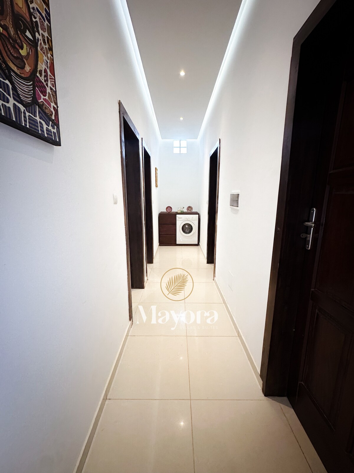 Paisible et central, à deux pas de la plage Cet appartement moderne et lumineux vous accueille en plein cœur de la ville, à proximité immédiate des supermarchés, restaurants, activités et lieux de sortie. Il est entièrement meublé, équipé de tout le nécessaire et doté d’un patio fleuri et privé pour vos moments de détente. L’immeuble est sécurisé 24h/7 avec gardiennage, caméras et groupe électrogène, et bénéficie d’un accès facile depuis l’aéroport.