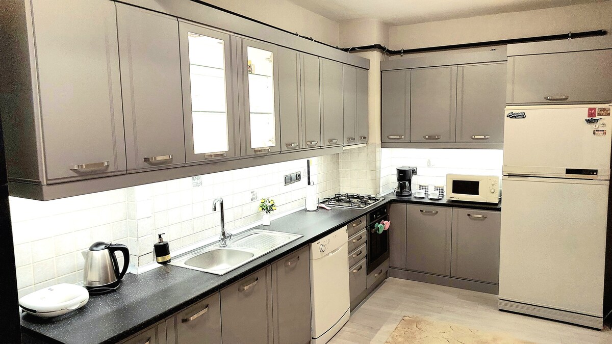 120 m2 modern, comfortable, luxurious apartment in the city center, equipped with all amenities. It offers views of the Old Town, the sea, and the Taurus Mountains. It's a 3-minute walk to the Old Town, a 10-minute walk to the marina, and a 10-minute walk to Mermerli Beach. Tram and bus stops are nearby. It's 100 meters from Hadrian's Gate, the entrance to the Old Town. It's 50 meters from the nostalgic tram stop. The metro station leading to the airport is 400 meters away.
