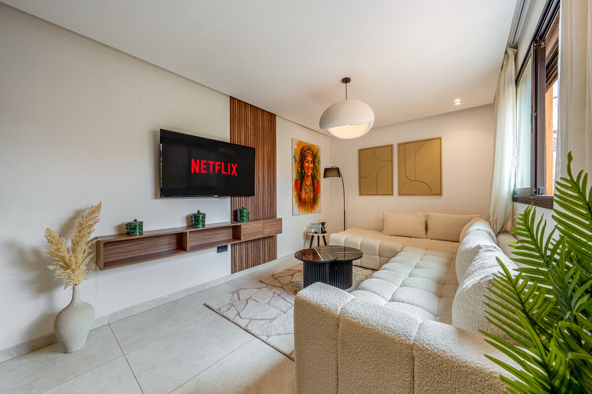 Descubre el lujo moderno en este elegante apartamento totalmente equipado en el corazón del distrito de Gueliz de Marrakech. Internet ultrarrápido lo hace ideal para viajeros de negocios y de placer. Camina hasta la estación de tren y el Teatro Real y disfruta de la proximidad a las tiendas Carré Eden. A poca distancia en taxi de Jamaa el Fna y de las principales atracciones. Por favor, ten en cuenta que no se aceptan parejas marroquíes solteras y huéspedes. ¡Reserva ahora para disfrutar de una experiencia inolvidable en Marrakech!