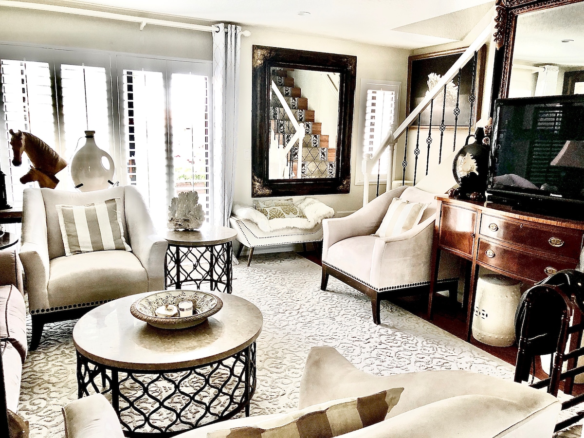 Bienvenido a este apartamento privado recién reformado. La sala de estar tiene muchos asientos acogedores, una chimenea de gas y un televisor inteligente. Disfruta de una taza de café o cocina tu comida favorita en la cocina completa. El dormitorio cuenta con una cama tamaño California King ricamente decorada para tu comodidad. Disfruta del aire libre en tu patio privado, refréscate en una de las varias piscinas del complejo o contempla las vistas del atardecer desde el jacuzzi. La propiedad se encuentra a poca distancia a pie del casco antiguo. *Accesible para sillas de ruedas. Ponte en contacto con nosotros para obtener más información.