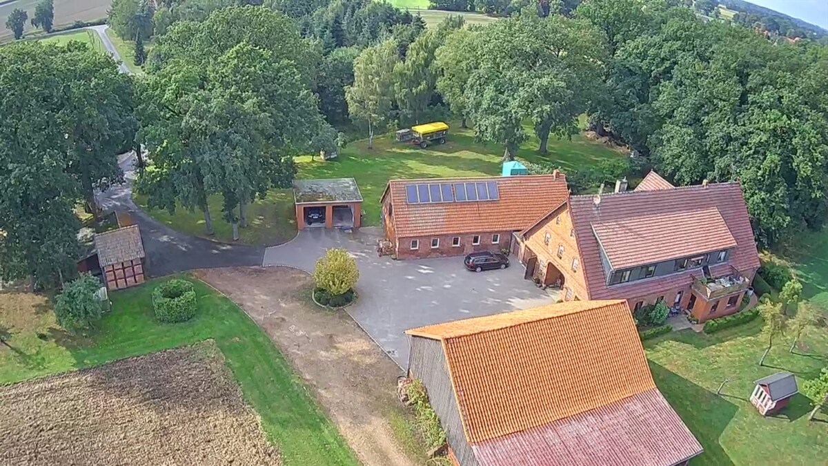 Nuestro departamento tiene capacidad para 4 huéspedes y está en el piso superior de la casa. El departamento tiene unos 100 metros cuadrados de espacio habitable con las siguientes habitaciones: • Pasillo •sala/comedor grande •Cocina • Abedroom con una cama doble. •Dormitorio con 2 camas de 90x200. • Baño con ducha (lavadora). •Secadora •Balcón con asientos. •Trona - Cama para niños -WiFi •Tenemos un espacio de almacenamiento para nuestras propias bicicletas. • A 30 minutos del Serengeti/Bird Park. •55 Min.Heidep. •10 min Magic Park\Niedersachsenhalle