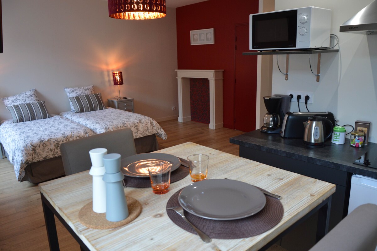 Este alojamiento perfectamente situado ofrece un fácil acceso a todos los sitios y comodidades (supermercado cercano, calle comercial, escuelas, banco, estación de tren, castillo, piscina, mediateca, teatro de cristal, restaurantes, alquiler de bicicletas..) Para su viaje de negocios, para un fin de semana de paso o el tiempo de una pasantía .. ¡se sentirá como en casa! La pequeña habitación es en formato cabina. Esta encantadora casita del centro de la ciudad está totalmente a su disposición y bien equipada.