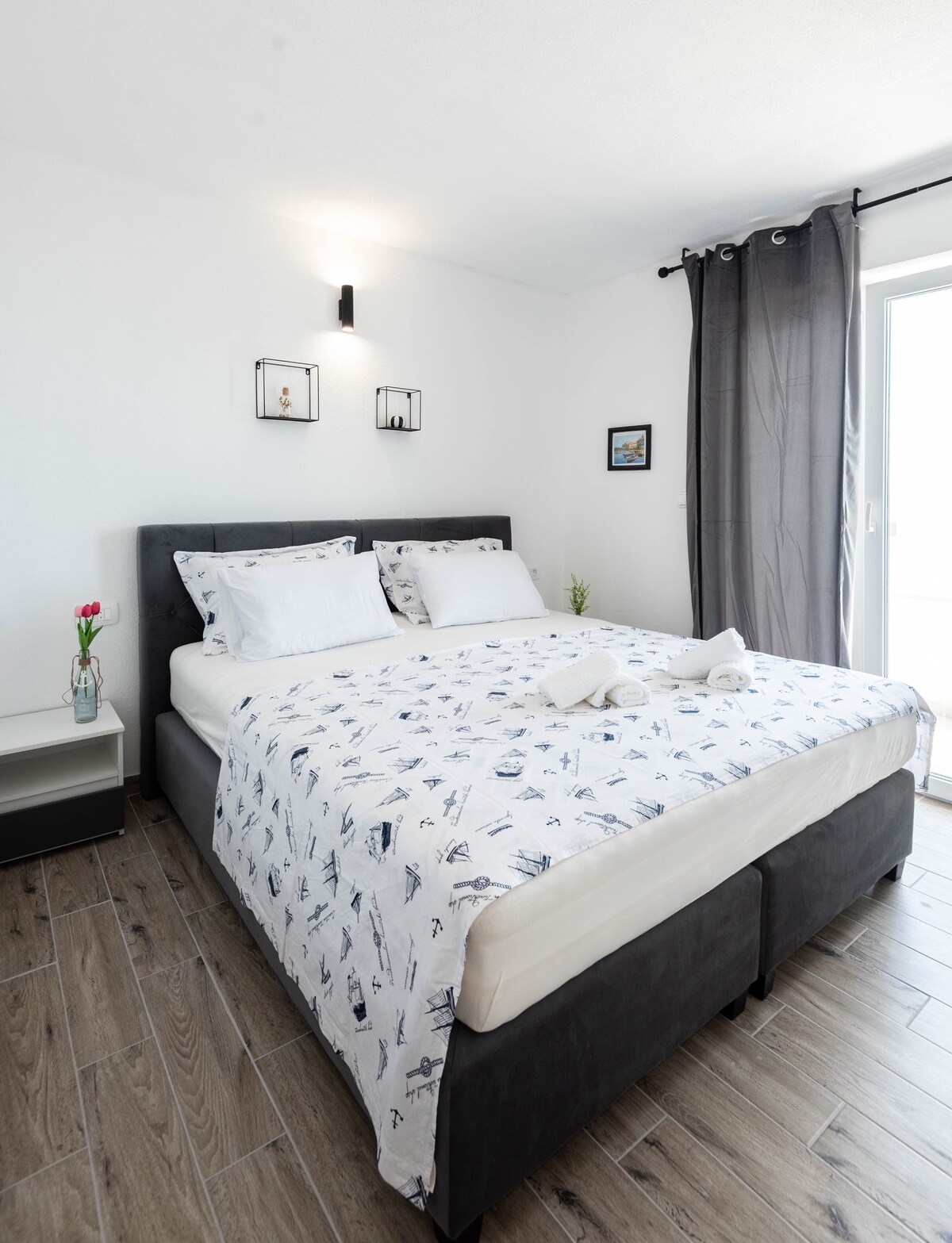 Apartamento moderno y cómodo en la primera fila al mar, situado sobre la hermosa playa con mar cristalino. La gran terraza en la parte delantera del apartamento es el lugar perfecto para disfrutar en las increíbles vistas al mar, las montañas e islas circundantes. El departamento tiene 2 dormitorios grandes, cada uno con una cama doble grande, una gran sala de estar con sofá, cocina y mesa de comedor, y 2 baños grandes. También hay un estacionamiento privado junto a la casa con mucho espacio para actividades al aire libre.