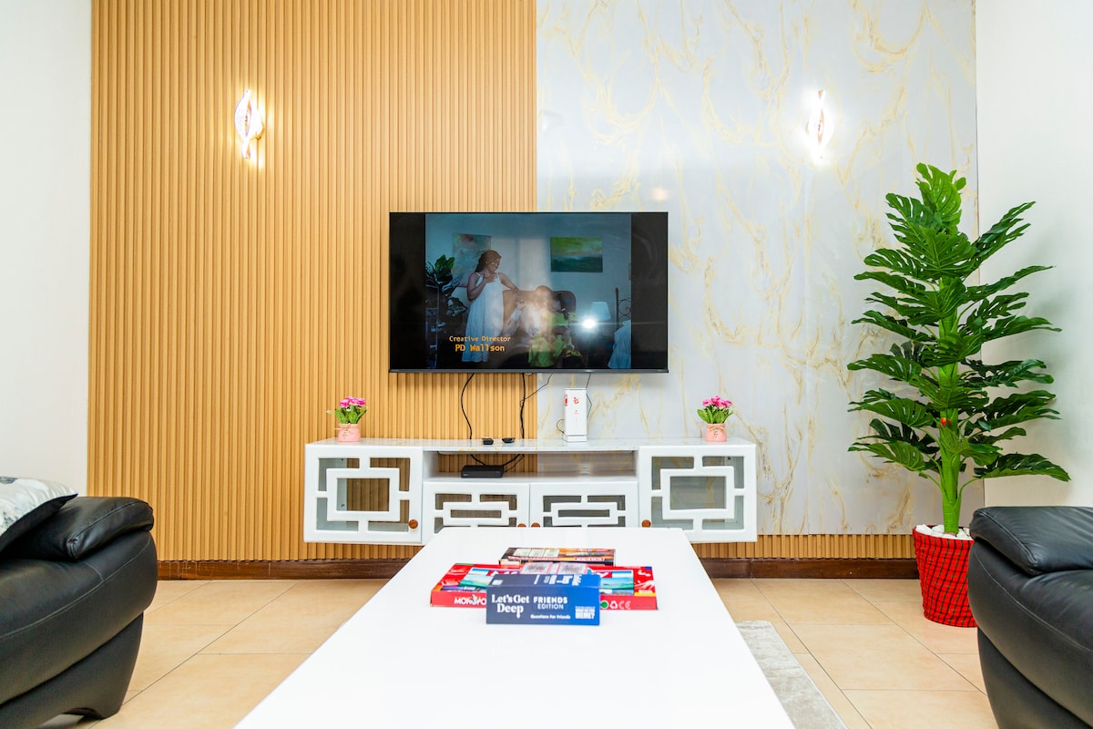 Ven a disfrutar de la villa de lujo Ubalozi para mayor comodidad con diseños modernos y sofisticados. Disfruta de cómodas camas y sofás con la máxima sensación de confort. > Ve programas y películas en una televisión de 75 pulgadas con Netflix gratuito, YouTube, Amazon Prime, Showmax y deportes en directo. > Experimenta el wifi de alta velocidad y el sistema de sonido de primera categoría con Bluetooth. > A solo 10 minutos del centro de la ciudad, playas, ferry de Zanzíbar y vibrante vida nocturna. > Suficiente espacio de estacionamiento, patio trasero con jardín adecuado para barbacoas. Disfruta de comodidad y lujo con nosotros.