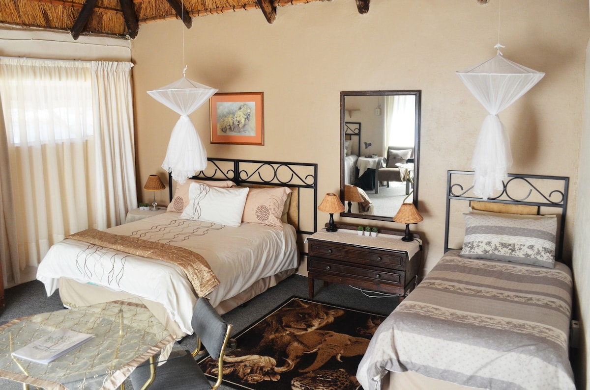 Este alojamiento tan extraordinario se te quedará grabado en la memoria. Ubicado en el frondoso barrio de New Europa, The Loft está a menos de 3 km del centro de la ciudad de Maseru, pero es muy tranquilo, como si estuvieras en lo profundo de la campiña de Lesoto. De estilo rústico, con techo de paja y escalera de ramas de árboles, este espacio es ideal para el viajero de negocios o cualquier persona que busque una estancia relajada en Maseru. TARIFA ESPECIAL PARA ESTANCIAS MÁS LARGAS Ofrecemos un descuento para estancias largas: 7 noches: 10 % de descuento 28 noches: 25 % de descuento
