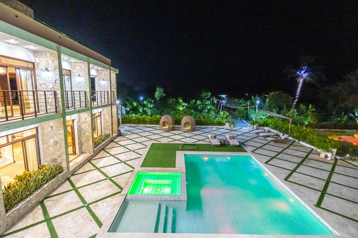¡Acabas de encontrar nuestro pequeño paraíso! Bienvenido a tu próximo nuevo hogar, una lujosa villa ubicada a solo 15 minutos de la playa de Las Calderas. ¡Cumpleaños, baby showers, fiestas de 15 años, etc. son bienvenidos! ¡Envíanos un mensaje y pregúntanos cómo! Equipado con Starlink, TV, aire acondicionado. Juegos, piscina y jacuzzi, ¡este espacio está totalmente listo para tu familia!