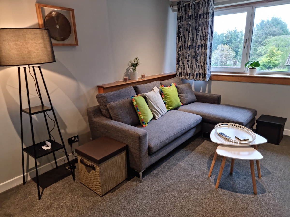 Encantadora suite con jardín con 1 dormitorio, sala de estar, cocina de servicio completo, ducha grande y acceso dedicado. Amplio estacionamiento seguro, con vistas a Prestwick Old Course, junto a la estación de tren de Prestwick, a 2 minutos de la calle principal con tiendas, cafés y bares. A 2 minutos de la playa con unas vistas impresionantes de la isla de Arran. Base perfecta para los visitantes de la hermosa costa de Ayrshire para turistas, caminantes y golfistas por igual, a menos de 45 minutos en tren directo al centro de Glasgow.