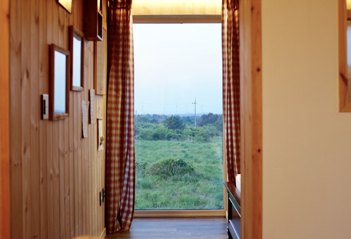 Es una casa rural anexa ubicada en Seonhul, Jocheon-eup, donde hay un bosque verde. Es un tranquilo pueblo rural junto a Dongbaek Garden y Geomun Oreum, y debajo está la playa de Hamdeok. Hay vistas a la montaña Hallasan, y a 4 minutos a pie de la propiedad hay famosos restaurantes de comida local y cafés de brunch, tiendas de conveniencia y paradas de autobús. Hay un sendero de Gotjawal que se puede caminar durante más de una hora. El dormitorio es cómodo con dos pisos y está lleno de aroma a cedro para que pueda descansar cómodamente.
