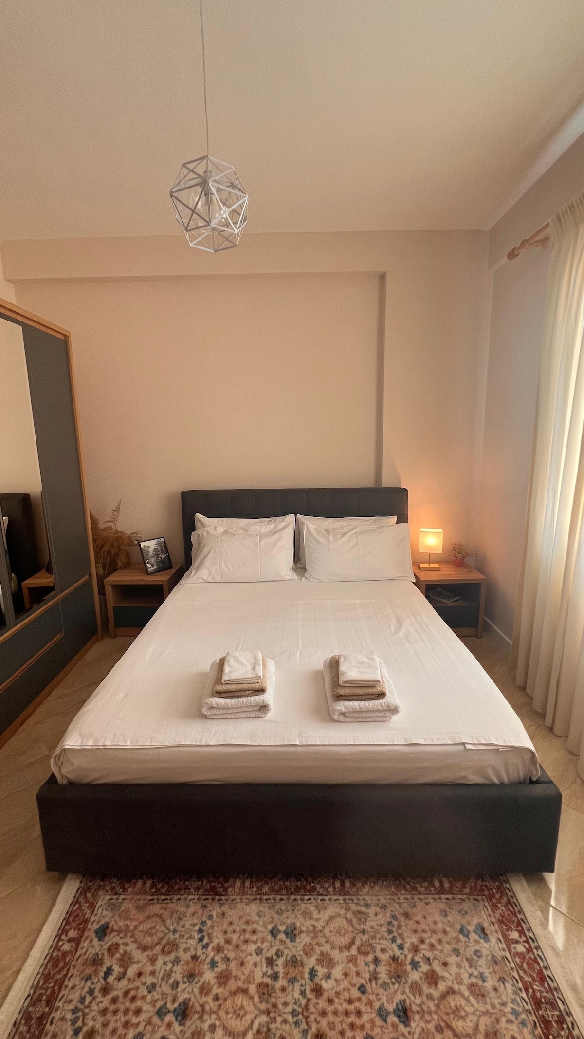 Crea experiencias y recuerdos en nuestro apartamento ubicado en Berat, a los pies de la colina del castillo. Nuestro apartamento es un espacio acogedor adecuado para cualquier persona que quiera disfrutar de hacer turismo por la ciudad de Berat, de 2400 años de antigüedad. 57 metros cuadrados que ofrecen todo lo que necesitas, desde el dormitorio hasta la sala de estar, la cocina, el baño y el jardín. El apartamento cuenta con todas las comodidades necesarias: wifi gratuito, cocina, aire acondicionado, TV inteligente, CCTV, aparcamiento gratuito, etc. También cuenta con un diseño interior muy bonito para que te sientas como en casa.