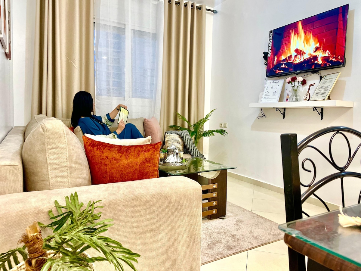 Un coin de paradis au nord du Maroc vous attend ! Venez vous ressourcer dans ce charmant petit studio, idéalement situé au rez-de-chaussée. Parfait pour accueillir jusqu'à 4 personnes et un bébé, il offre un couchage confortable : une chambre dédiée pour deux personnes et un espace salon convivial avec deux canapés pour les deux autres, un accès Internet rapide. Ce séjour s'annonce riche en découvertes et en détente. Préparez-vous à vivre des vacances inoubliables sous le soleil marocain.