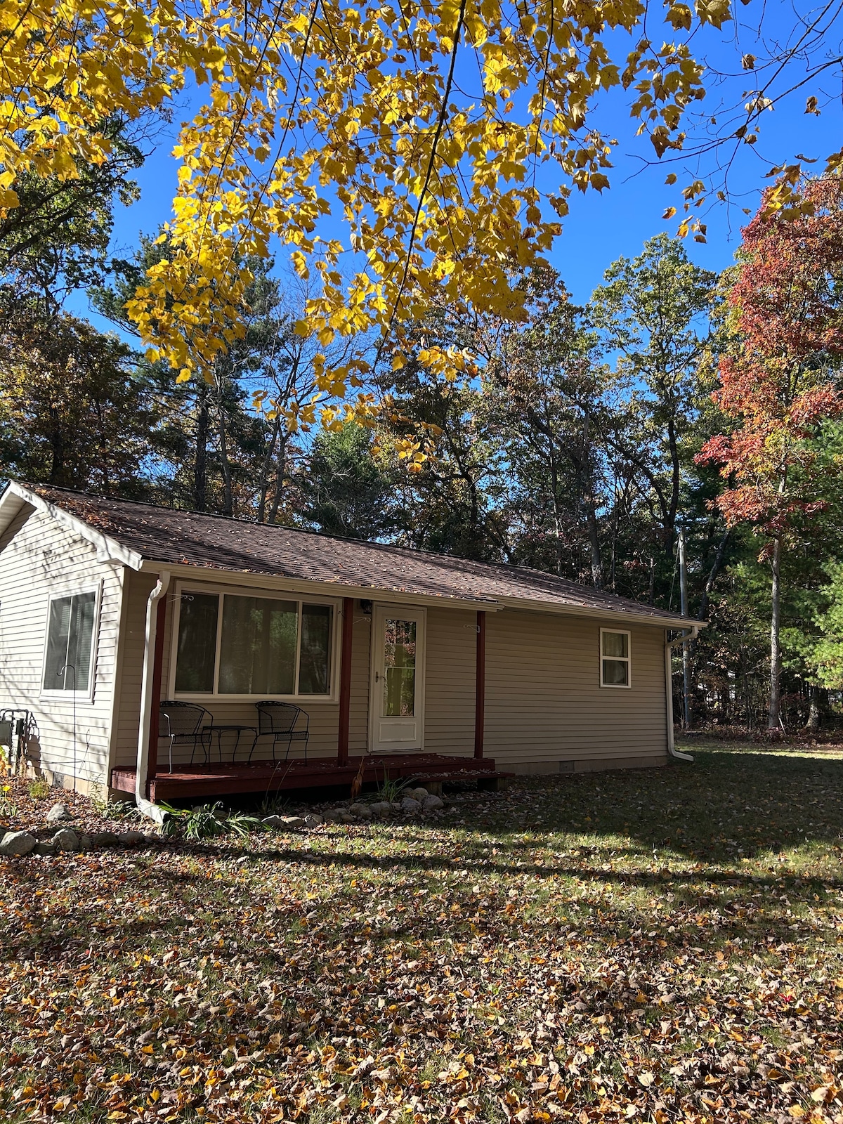 Escape to serenity at our cozy cottage on Chippewa Lake! This 800-acre all-sports lake is perfect for boating, fishing, and kayaking, with a private dock for your boat. In fall, enjoy vibrant colors, crisp evenings, and fires by the Solo fire pit. Winter brings ice fishing, snowy trails, and cozy nights inside. With a spacious patio, full kitchen, and room for couples or small families, this peaceful retreat offers relaxation and adventure year-round.