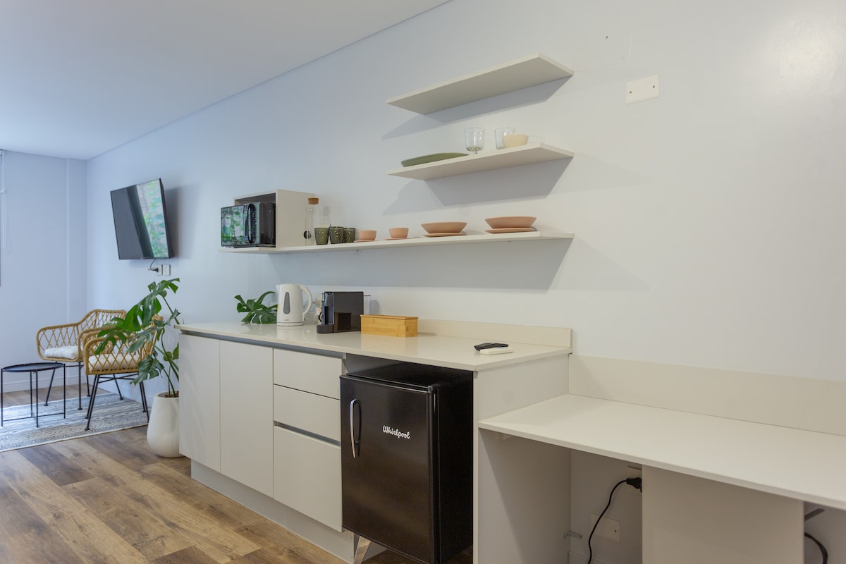 Disfruta de una confortable escapada en el corazón de la vibrante capital de Mendoza en nuestro Refugio Urbano Exclusivo. Este encantador monoambiente, perfecto para 2 personas, te ofrece una ubicación privilegiada cerca de atracciones y servicios.