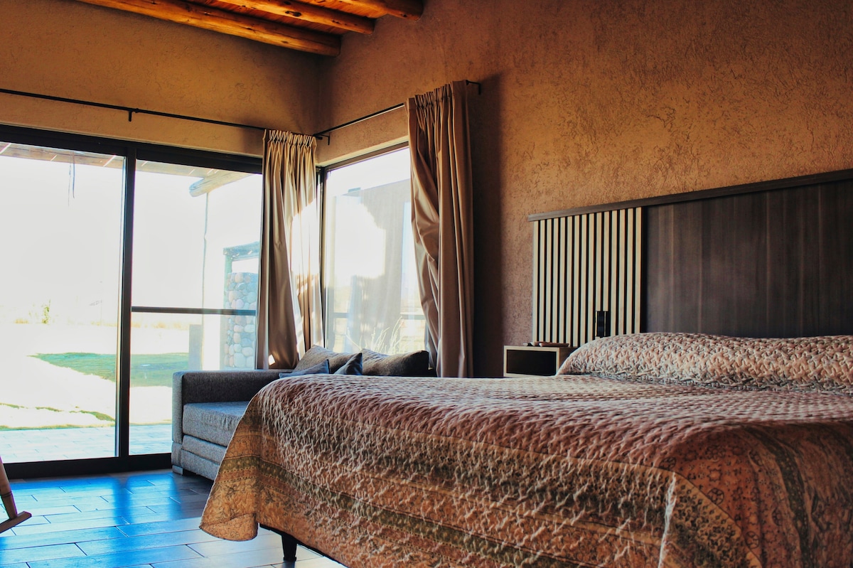 Un sitio único. Un espacio para habitarlo en su totalidad .A 13 Km de la ciudad de Mendoza y dentro del circuito "Por los caminos del vino". Con salida independiente, cochera exclusiva techada, excelente wifi, cama quenn, baño en suite, tv, heladera, horno eléctrico, microhondas, pava eléctrica, ropa de cama y de baño, toallas para piscina. Incorporamos split y caja de seguridad . Seguimos sumando comodidad y tranquilidad para que sea inolvidable vuestro descanso en nuestro espacio.