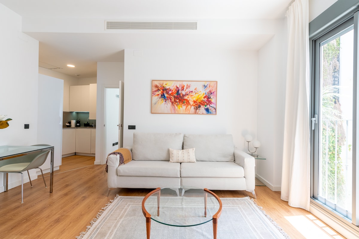 Sensacional apartamento de 2 hab. y 2 baños, ubicado en pleno centro de Sevilla para hasta 4 huéspedes. Destaca por su amplitud, elegancia y máximo confort. Con una terraza privada, el apartamento ofrece un ambiente luminoso y acogedor. El salón es amplio y cómodo, cuenta con una zona de trabajo y un gran sofá para relajarse. Además, dispone de ascensor, WIFI y aire acondicionado en todas las estancias. Su ubicación en el corazón de la ciudad es perfecta para explorar Sevilla a pie.