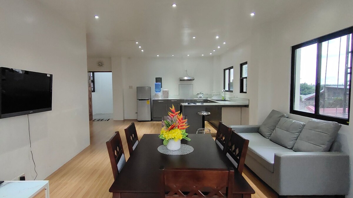 Forget your worries in this spacious and serene space. 1-6 persons may fit comfortably in this house. provides: Refrigerator wi-fi induction cooker rice cooker electric kettle smart tv kitchen Utensils room 1: queen size bed with 1 hp split type AC room 2: bunk bed with queen on lower and single bed on upper with 1 hp portable AC.