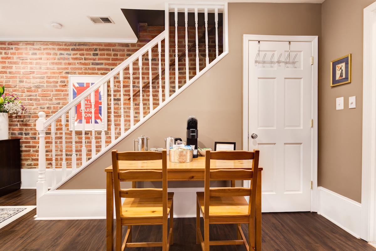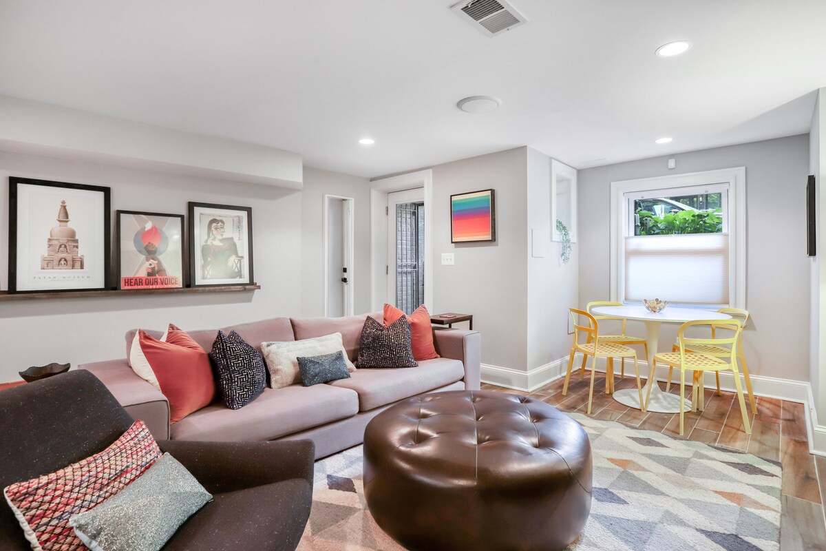 ¡Recién renovado! Bienvenido a una de las zonas más modernas de DC. Este apartamento de 1 dormitorio y 1 baño en un sótano inglés está lleno de luz natural. Situado a solo dos manzanas por encima de U St. (tiendas, bares, metro a 7 minutos a pie, restaurantes). El dormitorio cuenta con cama tamaño queen y baño adjunto, cocina totalmente equipada con cafetera Keurig, aire acondicionado central y calefacción, wifi, TV inteligente de 43 pulgadas (cable Sling en vivo, cuenta de Netflix, Hulu, Amazon o YouTube), combinación de lavadora/secadora de ropa. Productos de baño incluidos. ¡Se admiten perros!