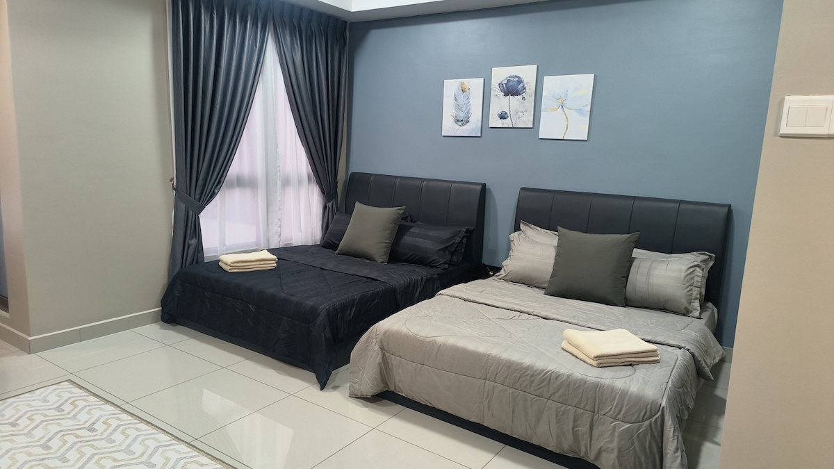 ¿Cuántas personas pueden alojarse aquí? El apartamento tiene capacidad para 4 personas y es cómodo para 6 personas. Está ubicado en el corazón de la ciudad de Melaka y a solo 3 km del edificio histórico A'Famosa y del edificio Studthuy's. Instalaciones: Ofrecemos aparcamiento GRATUITO para 1 coche en el nivel 2. Otros pueden aparcar en la planta baja. Lista de servicios que se proporcionan dentro de la casa: Este elegante apartamento también cuenta con 2 camas tamaño queen y 1 sofá cama plegable tamaño queen, 1 toto adicional, TV LED de 60 pulgadas con Android, wifi, etc.