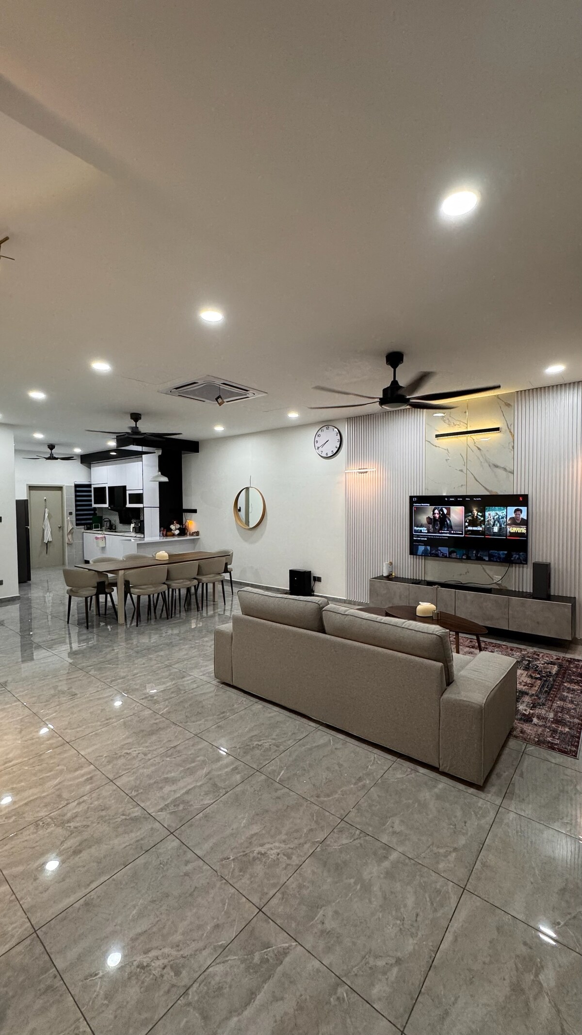 The Dan Garden -瑭苑 A newly furnished 6000+ sq. feet bungalow in the middle of Malacca. 15-20min from here to Jonker Gallery . In our location,guest won’t get sounds pollution form the car and traffic jam during peak season .Premium toilet and smart tv in every single room,Guests can relax in our garden and landscaping and enjoying the music that comes from the ceiling speakers in living room.We guarantee you will love this place because of the flamboyant ambiance,comfy beds,and of course the outdoors space. Room 1 & Room 4 -super single bed x 2 -queen size bed x 1 -bathroom (shampoo & towel included) -smart tv (strong connection) -hair dryer -cloth hanger -2.0 hp air conditioner Room 2 & Room 3 -king size bed x 1 -bathroom(shampoo & towel included) -smart tv (strong connection) -hair dryer -cloth hanger -1.5 hp air conditioner TV Room -55”Smart Tv (strong connection) -quality speakers -sofa beds Kitchen -plates&cups&spoon&fork (for 12 guests use) -cooking tools -coway water machine -Bar tender -fridge -washing machine Living Room -dining table -2.5 & 3.0 hp cassettes air conditioner -majong table Others: Car porch (for 3cars) Garden view courtyard x 2 modems x 2 Prohibition -No smoking indoor -No pets allowed -No outside activities after 11pm