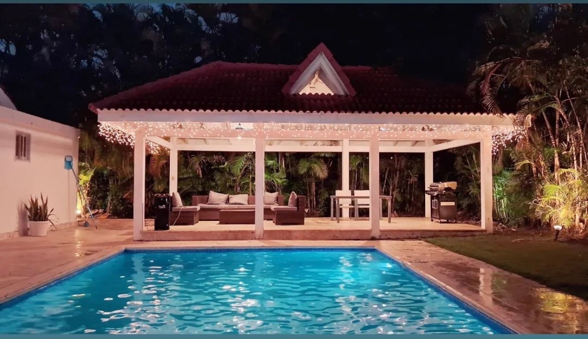¡CAMAS TAMAÑO KING! - Colchón de aire disponible para huéspedes adicionales. ¡CHEF DISPONIBLE! ($ 125 por día) (DESAYUNO, ALMUERZO Y CENA) -Vercerías no incluidas- A 25 minutos del aeropuerto (SDQ) *Debes enviar la lista de huéspedes antes del check-in * PISCINA, JACUZZI. CÉSPED CUIDADO PROFESIONALMENTE. BARBACOA, MESA DE BILLAR. *FRENTE AL CAMPO DE GOLF* PLAYA (1 minuto en auto) desde la entrada del club ALTAVOCES, SILLAS, MESAS ¡NOSOTROS LO PROPORCIONAMOS! - Por una tarifa adicional (fiestas de cumpleaños, eventos especiales, bufé, tarifa para huéspedes adicionales, DJ)