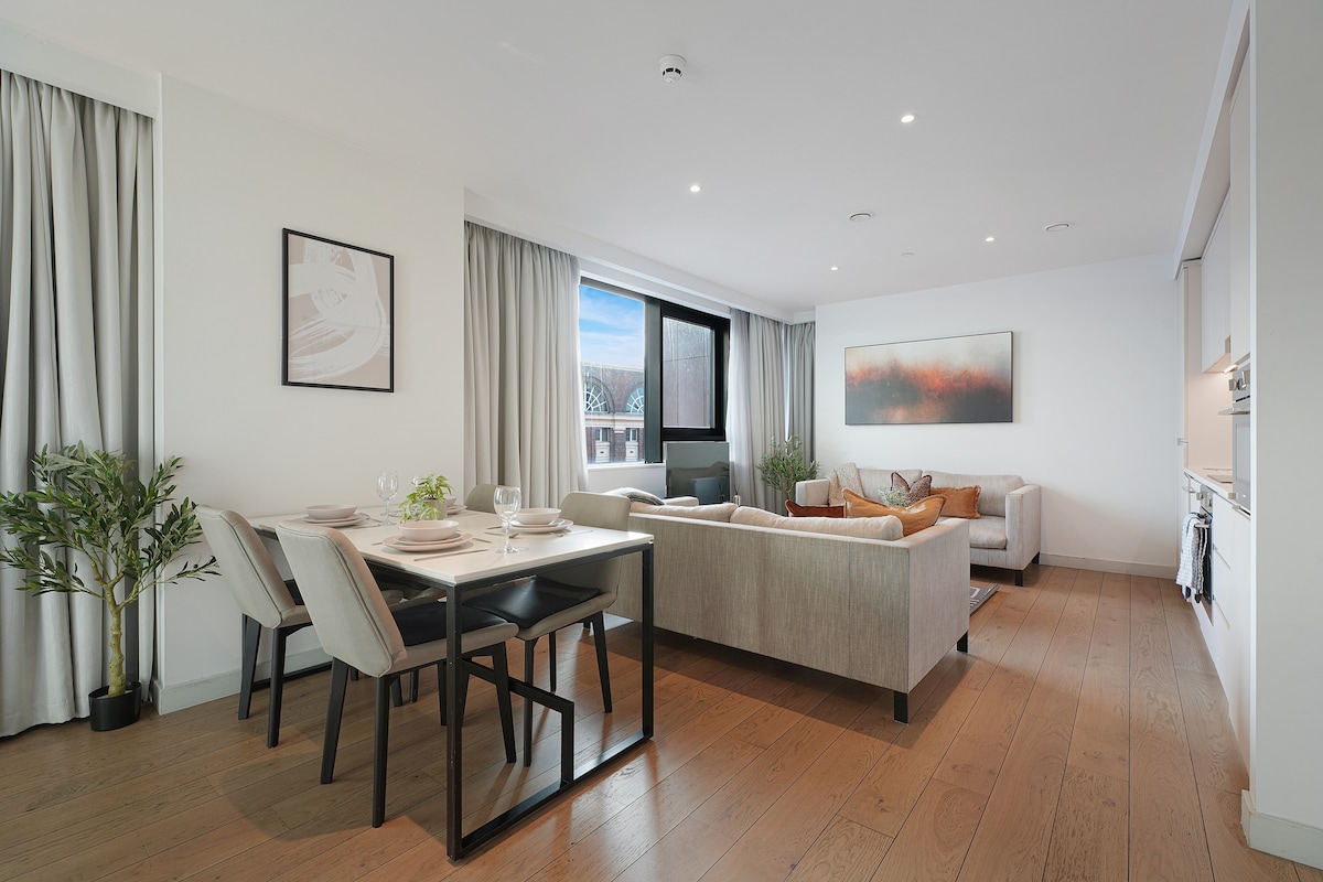 Nova Lux es un elegante apartamento de 2 dormitorios y 2 baños perfectamente ubicado entre los distritos Northern Quarter y Ancoats de Manchester. • Dos dormitorios, uno en suite y un baño principal, ambos con armarios empotrados. • Cocina moderna totalmente equipada con sala de estar de diseño abierto. • Televisión inteligente de 55 pulgadas con Netflix y Amazon Prime.
