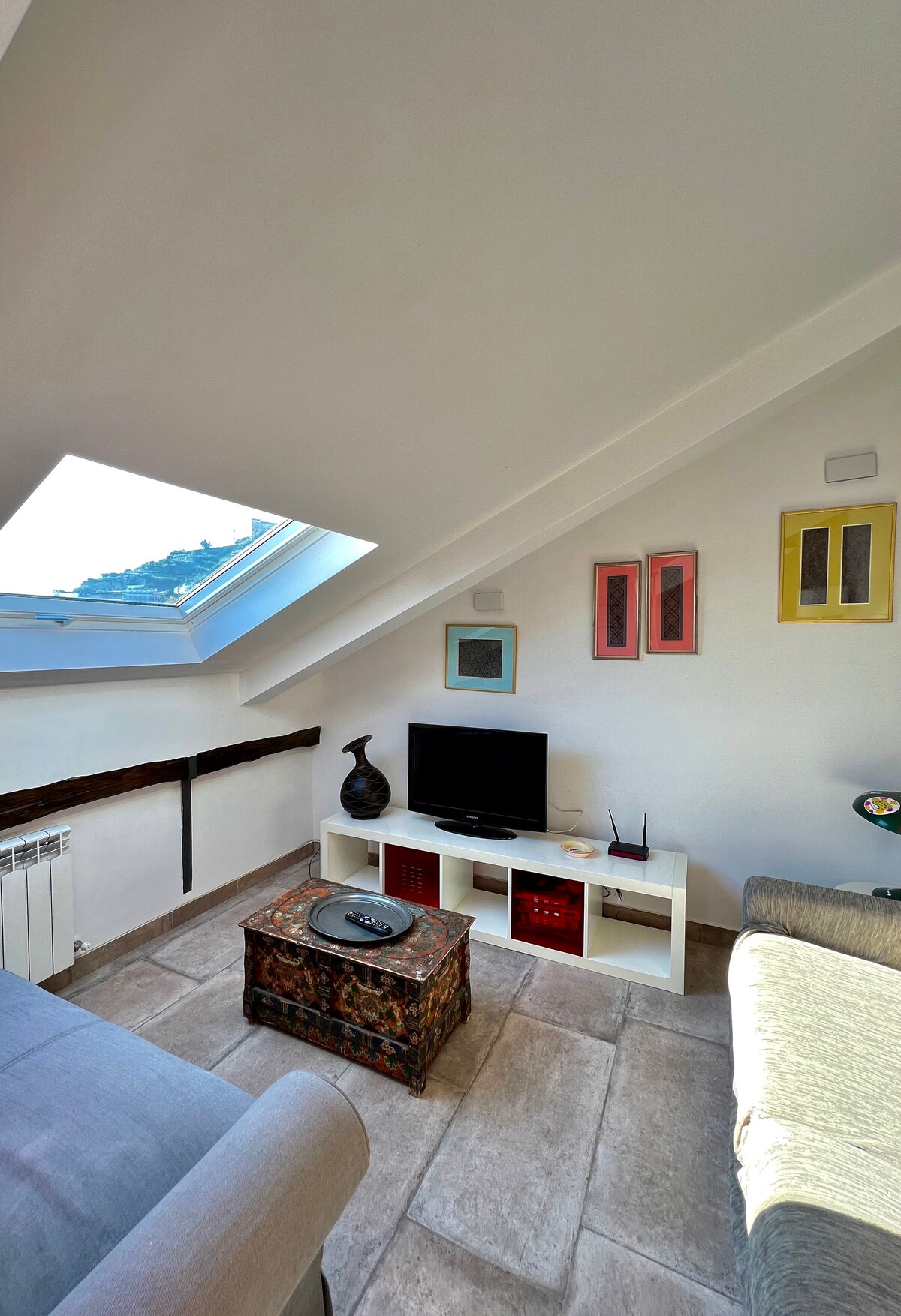 Precioso apartamento en la ciudad de Nápoles, en la zona de Petraio (escaleras antiguas), situado en una zona tranquila en la planta superior, sin ascensor, con una magnífica terraza con vistas al mar en el golfo de Nápoles (desde el volcán Vesubio, la isla de Capri, la colina de Posillipo). Amplia y luminosa sala de estar con sofás y cocina de mayólica, mesas de comedor interiores y mesa exterior en la terraza con vistas al golfo. Zona de dormitorio en la planta superior con habitación doble panorámica, baño y zona de estudio/relax.