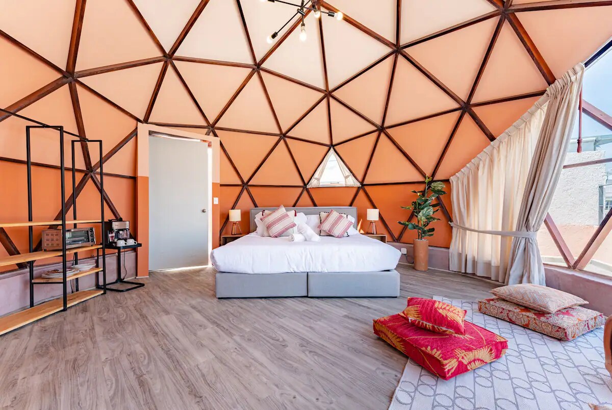 We have 3 more https://abnb.me/dobQuKhzUHb https://abnb.me/J2QI6zIzUHb https://abnb.me/4CukDRDzUHb This dome is a shell structure built from metal rods in this case, that allow the dome to withstand very heavy loads and high winds despite its lightweight structure. Most of the time when you think of glamping being off-grid comes with it. While you're not exactly off-grid here, as you do have electricity and wifi but you are off the beaten path enough to catch the sunset&sunrise from your dome.