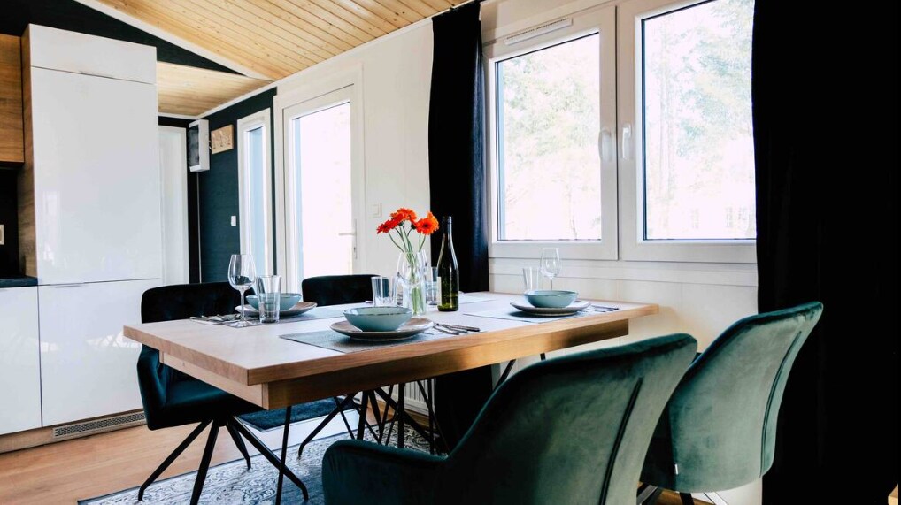 Within a 6000 sqm plot below the Veste Coburg you get a bungalow with every comfort. 3 rooms, 100 sqm, with kitchen (equipped with everything), two bathrooms, secluded terrace with large garden. Absolutely quiet and yet right in the middle of it all. 5 minutes by car and 10 minutes on foot to the center. High-quality furnishings. Floor-to-ceiling windows with a wonderful view of nature and Coburg. Ferienhaus - Waldblick - Coburg . De