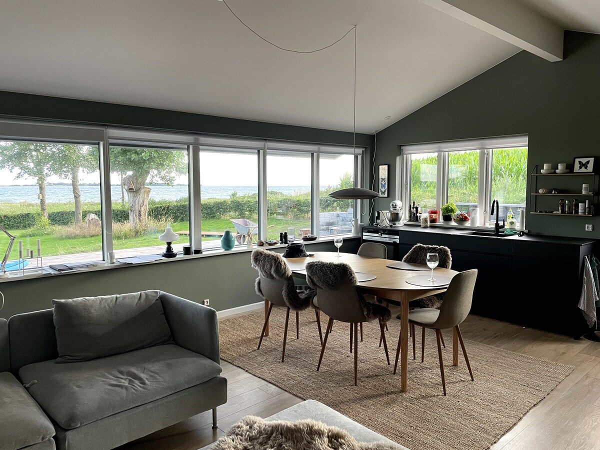 Villa grande con espacio para 10 personas. Situado en una zona pintoresca con bosque y playa a pocos pasos y excelentes vistas de Båring Vig. Planta baja: - Gran cocina. - Amplio comedor con acceso directo a la terraza con vistas al mar. - Bryggers - Baño más pequeño. - Baño grande. - Dos dormitorios. - Sala de juegos Primer piso: - Amplia sala de estar con balcón y vistas al mar. - Baño - Dos habitaciones. Se pueden alquilar ropa de cama y toallas (no incluidas en el precio). El consumo (electricidad y agua) se liquida directamente con el propietario.
