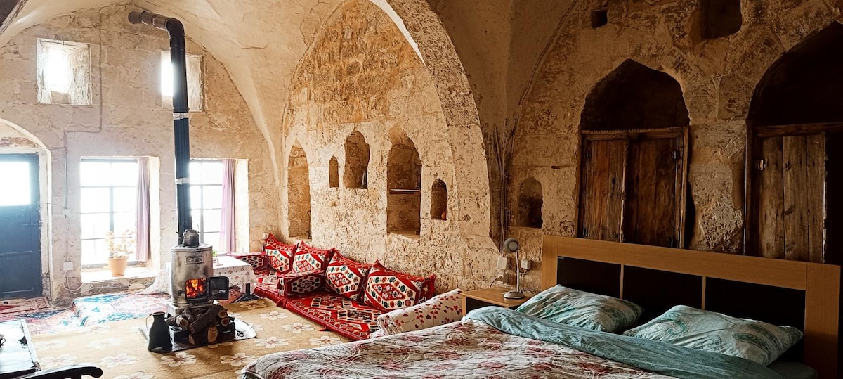 Mi casa histórica, que tiene una historia de 1300 años y es utilizada por los asirios que vivieron en la región antes, está diseñada con la combinación de toda la textura histórica y la estética moderna, y está a poca distancia a pie de todos los lugares que puedes visitar en el antiguo Mardin. Gran Mezquita:40 segundos Bazar:50 segundos Y es similar a muchos más sitios históricos, puedes llegar al lado de la casa con tu coche, puedes hacer paseos seguros y agradables por la noche en su calle especialmente diseñada Recorre la comida local de Mardin, cuéntame con antelación para desayunar:)