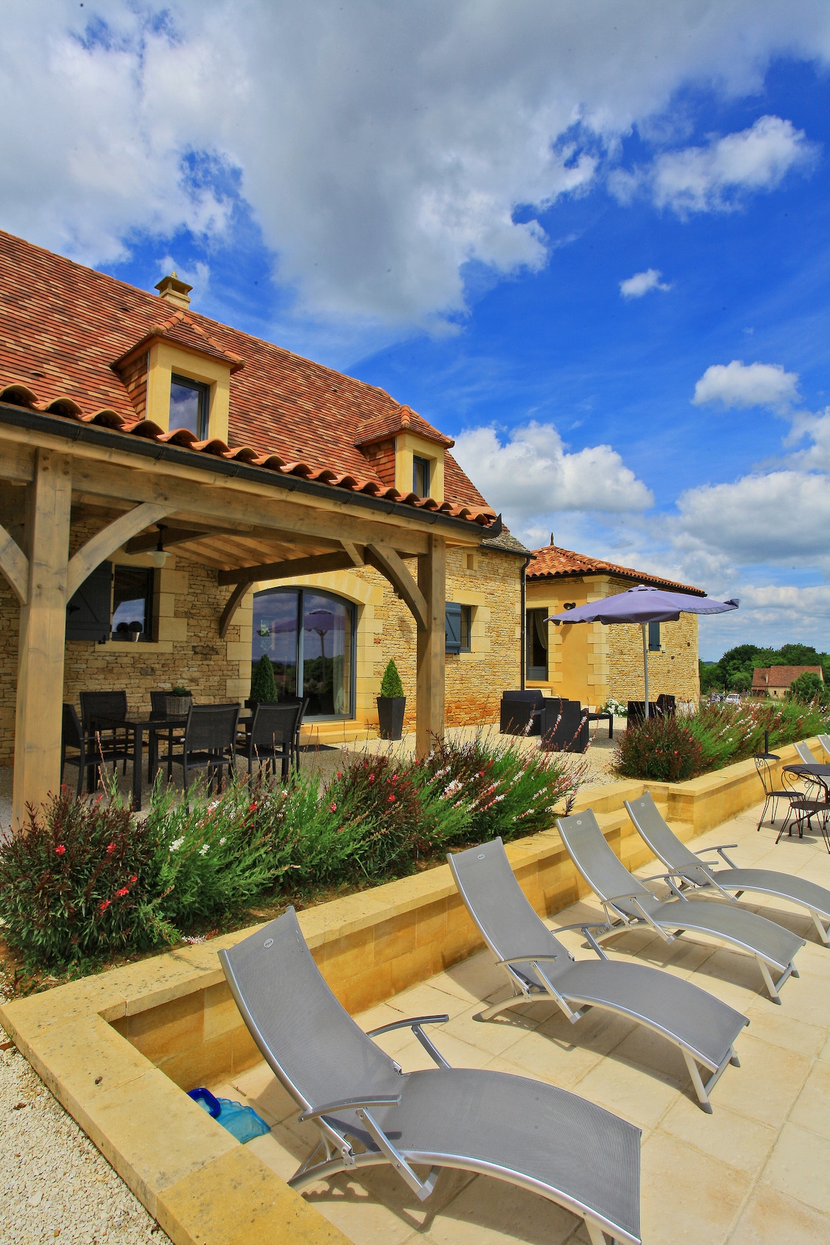 L'Ombrière es una hermosa residencia del siglo XVIII ubicada a 5 km de la ciudad medieval de Sarlat y está a 200 m del tremendo Château de Montfort , que también es un pueblo fascinante en el valle de Dordoña. Hermosas vistas panorámicas del valle de Dordoña y cerca del río y sus lugares para nadar. Punto de partida perfecto para visitar todos los sitios turísticos de la región. 4 encantadores dormitorios, cada uno con baño privado y baño privado. Las 2 habitaciones del ático están equipadas con aire acondicionado.