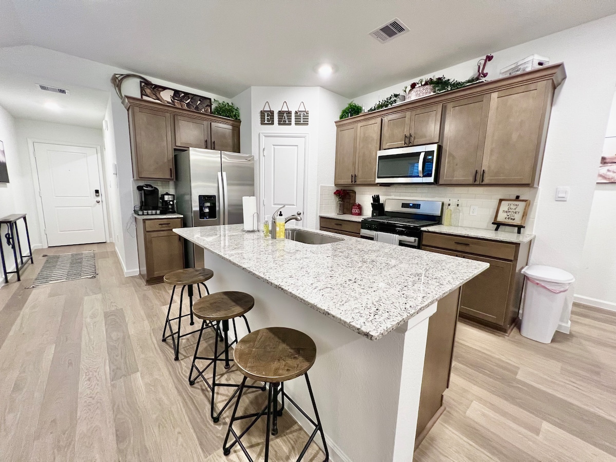 Relájate en una nueva casa adosada «Boho Modern» ubicada en el centro histórico de Bryan y a poca distancia a pie de Ronin, Black Water Draw, RX Pizza, The Village, Cilantro, el mercado de agricultores y muchos más restaurantes. Ambos dormitorios tienen camas tamaño king y la habitación principal/sala de estar tienen televisores de 50 pulgadas. Inicia sesión en tu cuenta personal de streaming o utiliza nuestro Hulu, Disney+ o ESPN+, como cortesía. Relájate en el patio trasero privado o cocina en la hermosa cocina que incluye una cafetera Keurig con cápsulas y cremas.