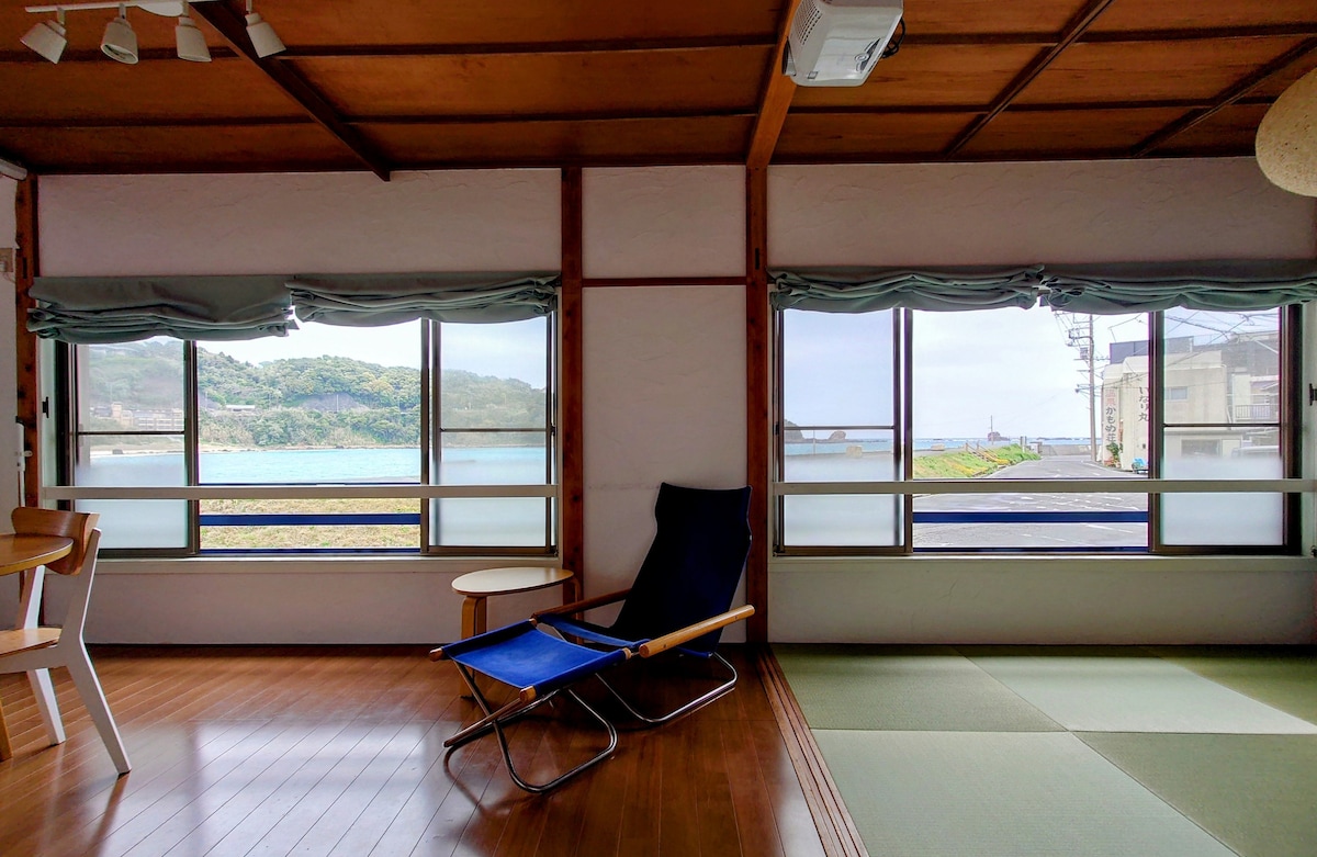 Es una casa de playa a lo largo de la costa de Sotoura a la que se puede acceder en autobús desde la estación de Izukyu Shimoda.A 50 metros de la costa de Sotoura.La playa es accesible descalzo y la ducha exterior es cómoda. Esta cabaña tiene 6 esteras de tatami en el dormitorio, una sala de estar (4,5 esteras de tatami + 8 pisos de tatami, incluida una cocina), un baño con bañera y un proyector de pantalla grande de 100 pulgadas. La cocina está totalmente equipada con una estufa de gas (2 puertos), un refrigerador, un microondas, una tostadora, utensilios de cocina y platos, y hay una parada de aguas termales (adultos 700 yenes ~), un hinoyasan, una tienda de venta directa de verduras recogidas por la mañana, una deliciosa panadería y una tienda de comida a poca distancia. Desde despertarse por la mañana hasta dormir por la noche, este es el lugar perfecto para sentir el mar y pasar un tiempo con su familia y amigos. Es una cabaña que el propietario renovó personalmente una casa privada de 54 años y abrió como Sotora Beach House "Nami no Oto" en agosto de 2020 con una mente reflexiva. # naminote 2020 [Instalación designada para la tarifa de estadía de los residentes] Si estás considerando mudarte, puedes solicitar un subsidio (4000 yenes por persona por noche). Para obtener más información, visita la División de Promoción Industrial de la Ciudad de Shimoda (0558-22-3914).