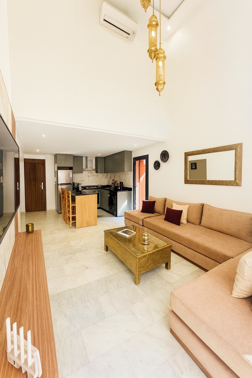 ¿Alguna vez te has imaginado emprendiendo un fascinante viaje por las vibrantes calles de Marrakech? ¡Deja de soñar y empieza a vivirlo! Este apartamento único es una joya absoluta esperando a que lo reserves. Situado al alcance de todos los maravillosos sitios y comodidades, tu estancia promete ser una experiencia encantadora. Café y té✔ gratis <3 Wifi ✔ de alta velocidad. ✔ Cama tamaño king. Lavadora ✔ gratuita. Ropa ✔ de cama de primera calidad «Beckendorff» Piscina cubierta✔ privada. ✔ Smart TV grande.