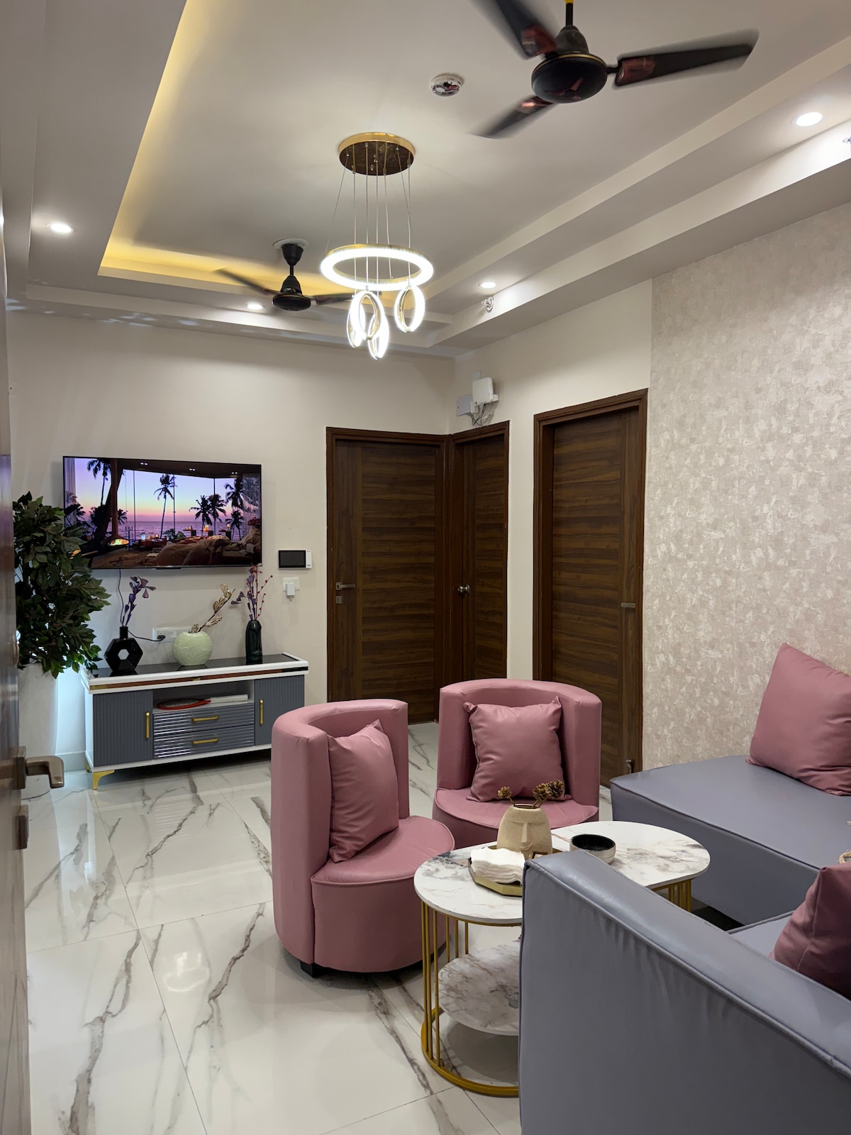 Stylish Comfort in the Heart of Rajnagar Extension A cozy, modern stay in the center of Rajnagar Extension. Enjoy easy access to shops, cafes, salons, groceries, and local food stalls — all just steps away. The fully furnished flat offers elegant decor, soft lights, and comfy furniture. Ideal for work trips, family visits, or city breaks. Feel right at home in a safe, walkable, and vibrant area with everything you need nearby.