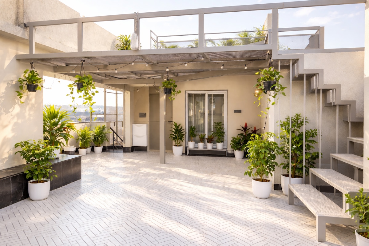 Escape to a luxurious forest-view penthouse in the heart of Gachibowli. This designer 1BHK features a stylish kitchen, ambient lighting, and a private outdoor gazebo perfect for relaxing evenings, romantic getaways, or work-from-luxury stays. Surrounded by greenery with skyline views, it offers premium interiors, fast WiFi, secure parking, and total privacy. Minutes from top IT parks, cafes, and nightlife. A peaceful, upscale retreat above the city.