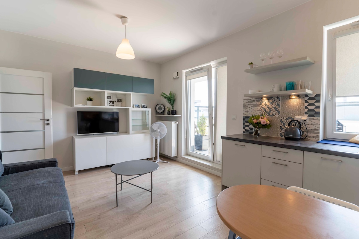 Le invitamos a un apartamento moderno y acogedor, situado en el barrio de "Włochy" de Varsovia. El apartamento está situado en un edificio moderno, rodeado de numerosas tiendas, puntos de transporte público (que permiten llegar al centro en 15-20 minutos) y puntos de servicio (gimnasio, panadería, salón de masajes, etc.). No muy lejos del apartamento también se encuentra el centro comercial «Faktory» y el parque Kombatantów. Un lugar ideal para estancias cortas y largas, que ofrece comodidad y una ubicación conveniente.