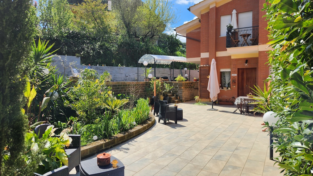 ¡Relájese y la naturaleza en Manziana! Hermosa villa de dos pisos, ideal para familias y grupos de hasta 8 personas. Cuatro dormitorios, tres baños, gran sala de estar, cocina equipada y jardín privado con barbacoa. Rodeado de vegetación, a pocos pasos del bosque, perfecto para aquellos que buscan tranquilidad y contacto con la naturaleza. Transporte público a solo unos minutos para visitar la zona o llegar a Roma. Se admiten mascotas.