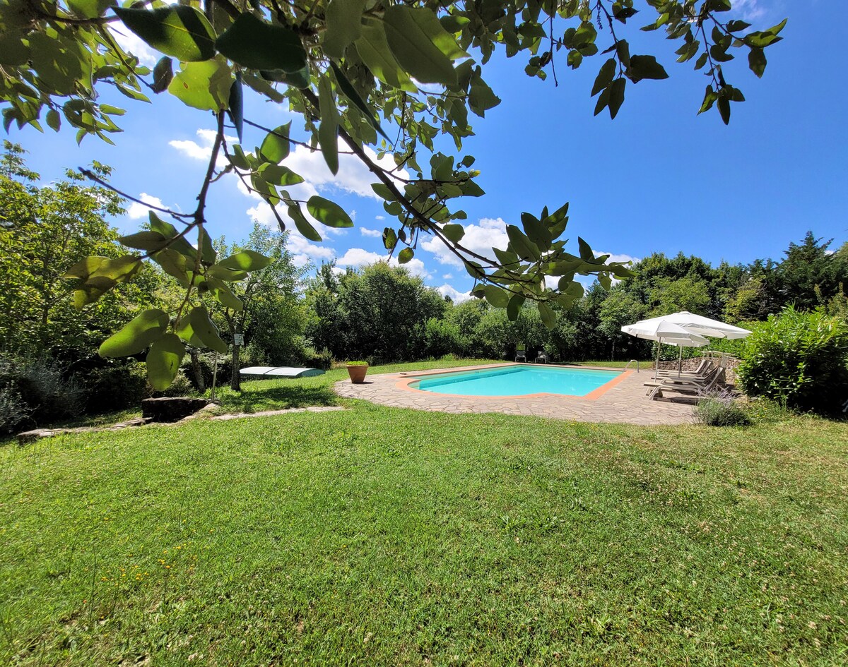 Situada en una posición panorámica con vistas a un paisaje verde de colinas boscosas, esta hermosa casa de piedra, rodeada por un amplio jardín vallado, ha sido restaurada y amueblada de manera sencilla y cómoda para el uso vacacional. La casa está rodeada de un amplio jardín vallado donde se encuentra la piscina (6x 12 m – profundidad de 1,20 a 1,50 m, apertura de temporada) y los huéspedes tienen una logia cubierta amueblada con mesa y sillas para cenas al aire libre.