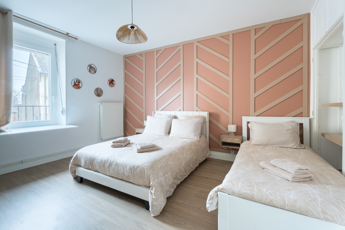 Appartement cosy et lumineux avec tous le nécessaire pour que vous ne manquiez de rien pendant votre séjour il se situe au 2eme étage/2 Jusqu' à 6 voyageurs - 2 chambres -1salle de bain 🚗A moins de 10 min: Usine Sovab Zone commerciale (Lidl, Carrefour, Marie blachère) 🚗A moins de 20 min : Site thermal Amnéville: Cure, Thermapolis, Villa Pompei, accrobranche, Bowling- Snowhall-Salle de concert- Zoo- Casino-Cinéma 🚗Accès A31 à proximité