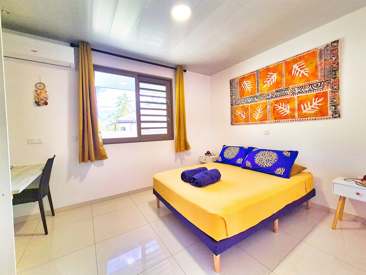 6 estudios equipados con 1 cama doble, colchón ortopédico, aire acondicionado, aire acondicionado, tv, WiFi, Zona de cocina, cocina americana, nevera, microondas, vajilla, Baño equipado, ducha estacionamiento gratis Tienda de alimentos a 50 m Barrio de Moorea más popular ya que está cerca del muelle de las lanzaderas rápidas entre Tahití y Moorea (10 minutos) y el aeropuerto (5 minutos), golf internacional y varios centros comerciales. 1 pizzería en la planta baja del edificio. Recepción entre las 13:00 y las 15:00 h.