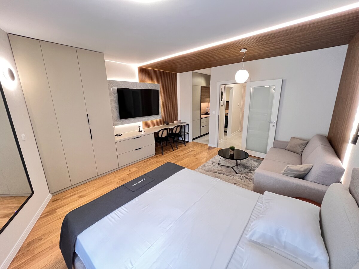 Este apartamento es un lugar precioso para tu viaje de negocios, de placer o cualquier otro que tenga lugar en nuestra hermosa Podgorica. El apartamento es amplio, luminoso, con un dormitorio, sala de estar, cocina y baño, así como un pequeño pasillo y balcón. Está a solo 10 minutos a pie del centro de la ciudad y a 100 metros del supermercado, tiendas y cafeterías. Lo más destacado de tu estancia será un hermoso paseo por los senderos de la colina Ljubovic, ¡que está justo encima de nuestro apartamento! ¡El garaje es gratuito!