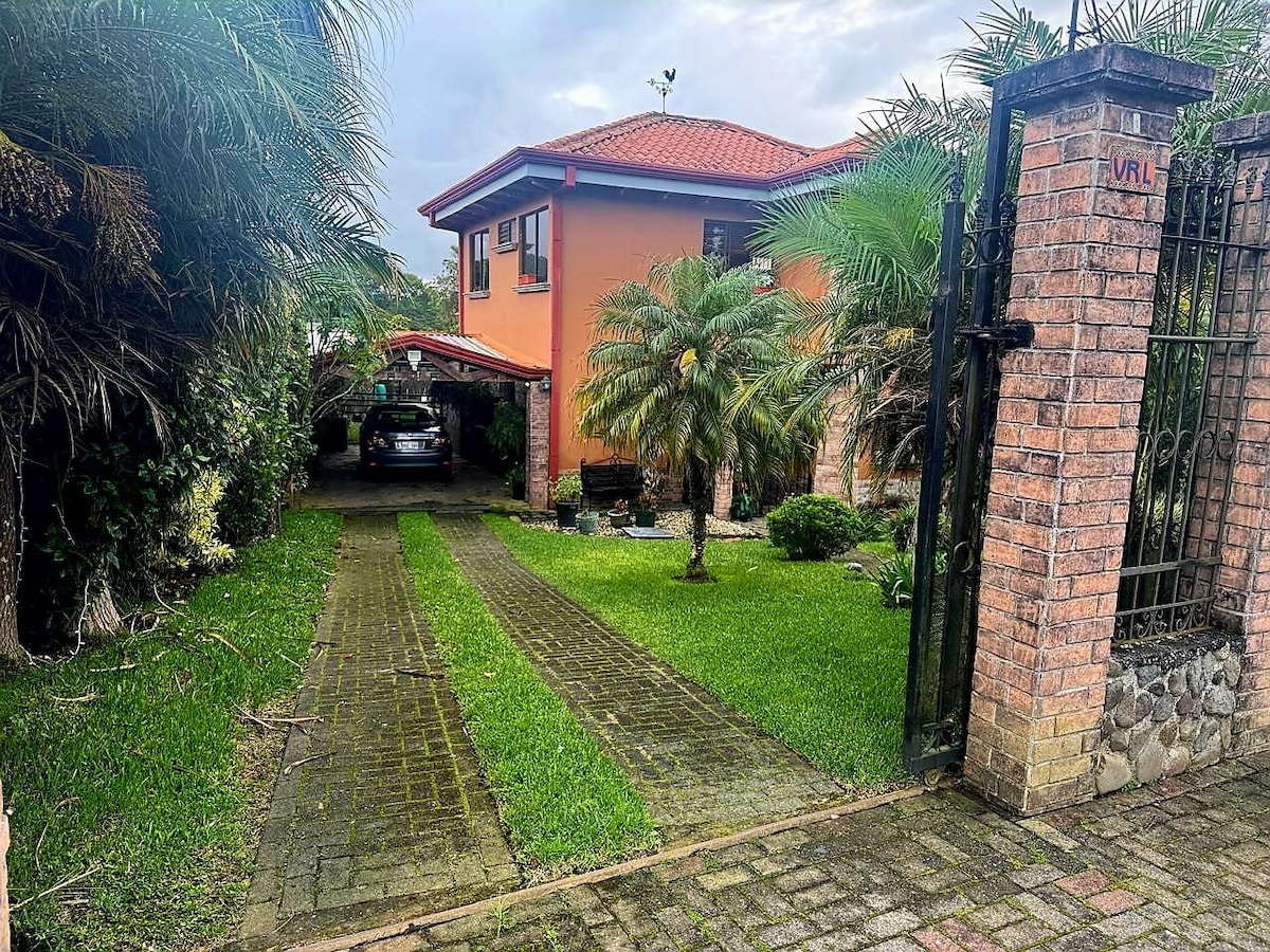 Diseñé y construí esta casa con la idea de tener un hogar en Costa Rica,algo no lejos del aeropuerto y escondida con árboles alrededor, espero puedan disfrutarla como yo,la naturaleza en todo su esplendor, con el sonido del rio que esta en la parte baja de la propiedad donde se puede escuchar la paz y la belleza de santo domingo,ya sea cenando o desayunando de noche desde alguno de los 3 balcones que quieran sentarse,comprar supermercado otros restaurantes,parada de bus en frente de la propiedad