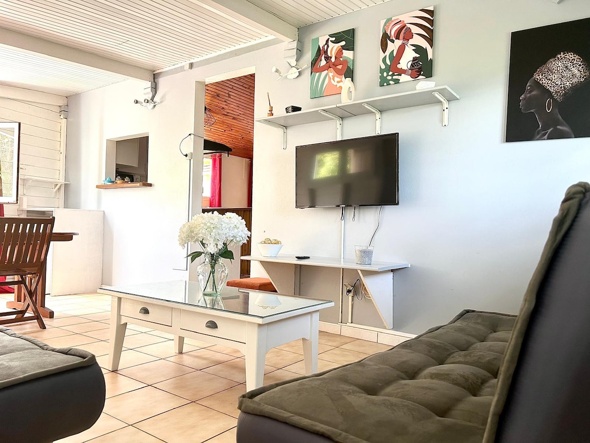 Charmant bungalow, sur terrain arboré, avec son bac a punch privé est situé en bord de mer, dans la baie de la Cherry, au Diamant. 1 chambre et 1 salle de bain permettant d'accueillir confortablement 2 adultes. Climatisation et télévision, Wifi et système audio Bose. Notre conciergerie est à votre disposition pour vous aider à organiser votre séjour : Visites, excursions en bateau, chefs à domicile... Un service journalier de ménage est possible sur demande