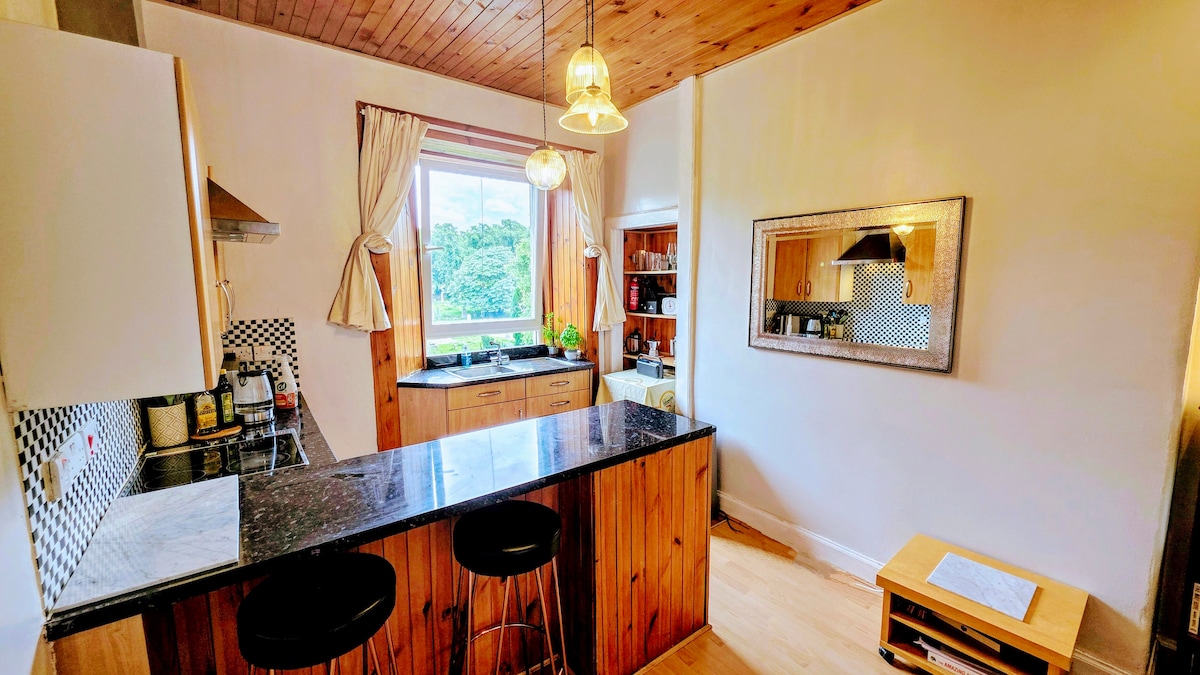 Un hermoso departamento tranquilo que te ofrece una experiencia como en casa. A 30 minutos del aeropuerto. A 20 minutos de la estación de tren de Waverley. Castillo de Edimburgo: 2,4 millas. Princes Street: 2 millas. Amplio y equipado con todo lo necesario para una escapada de unos días. La cocina está totalmente equipada y la zona de estar/comedor cuenta con una cómoda mesa de comedor para seis personas. Restaurante y supermercado cerca. Se puede ir caminando al centro de Edimburgo, pero también hay un servicio frecuente de autobús urbano justo en la puerta.