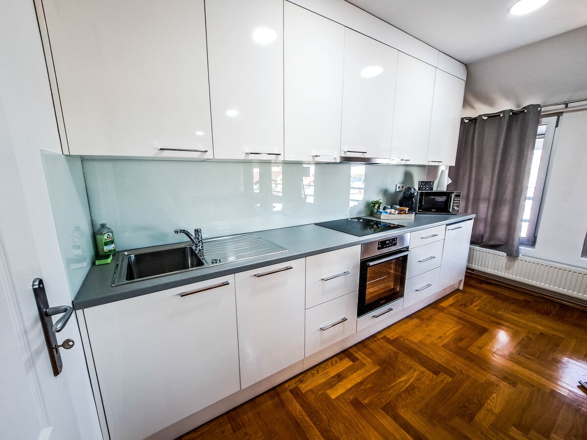 ¡Disfruta de la comodidad y el estilo en un apartamento nuevo y lujosamente amueblado, ideal para una estancia corta, un fin de semana romántico, un viaje de negocios o relajación en la ciudad! Acerca del departamento: Sala cómoda con TV inteligente Cama matrimonial Cocina totalmente equipada. Baño elegante Wifi gratuito, aire acondicionado, calefacción GARAJE GRATUITO Ubicación: El departamento está ubicado en una parte atractiva de la ciudad: una calle tranquila y a pocos pasos del centro, restaurantes, cafeterías y un centro comercial. Gran conexión con todas las partes de la ciudad.
