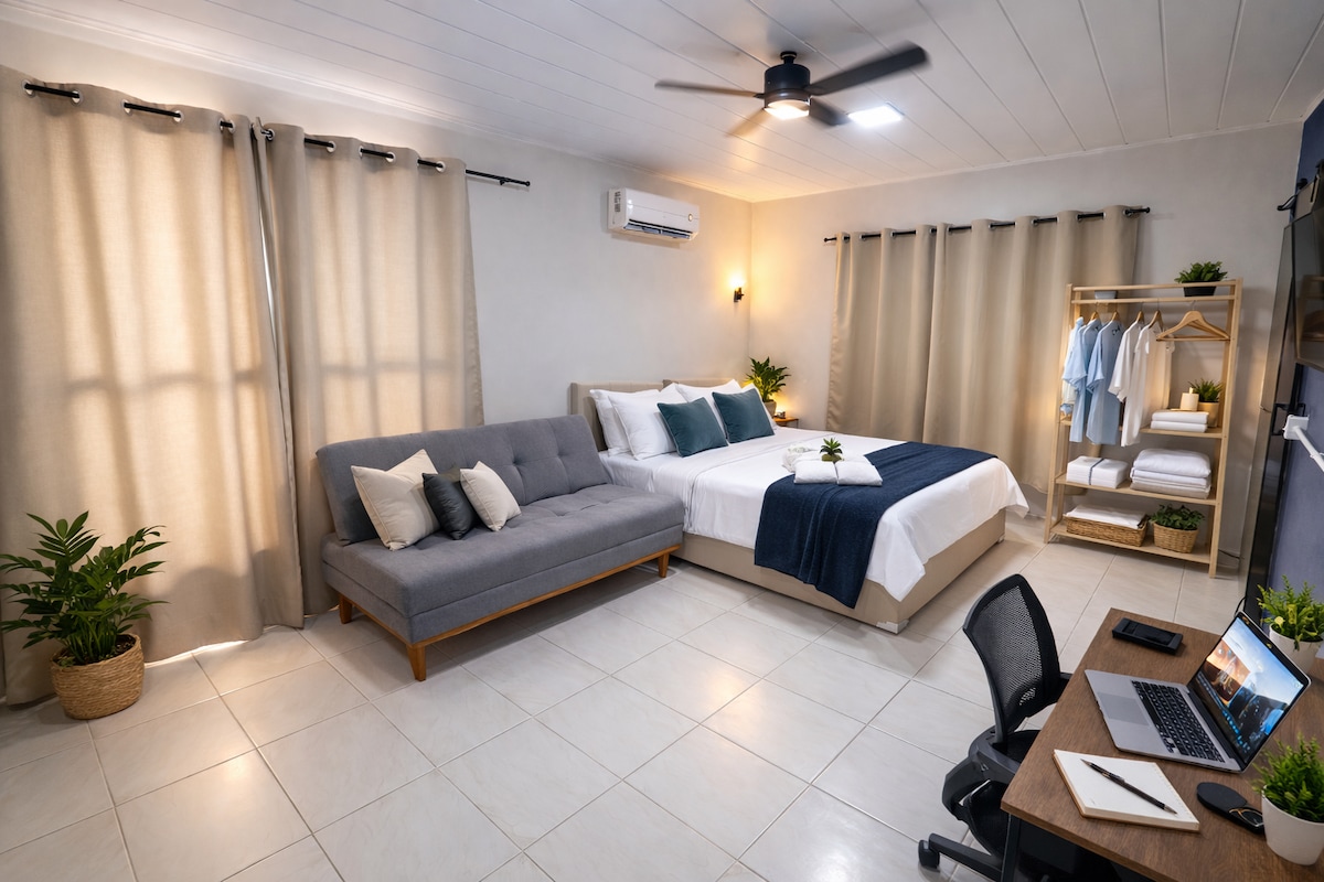 Este alojamiento fue diseñado para aquellos que buscan tranquilidad, comodidad y la sensación de estar en casa. El ambiente es tranquilo, bien cuidado y acogedor desde el momento en que llegas. El entrepiso aporta un encanto especial al espacio, creando un ambiente agradable y acogedor para relajarse. Además, la ubicación es una gran ventaja: está cerca del centro comercial y de los lugares turísticos, en Vila Velha, Espírito Santo, lo que facilita las excursiones, el ocio y las actividades diarias durante la estancia.