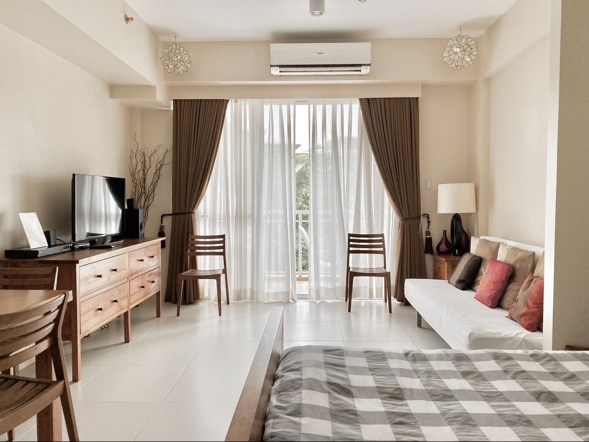 Please read below before booking. ONE OF THE FEW UNITS WITH CONVERGE HOME WI-FI Smart tv with Amazon prime and Netflix ENTRANCE FEE IS MANDATORY BEFORE ENTERING PICO. ENTRANCE FEE NOT INCLUDED. Large 55 sqm unit. BEDROOM AND LIVING ROOM IS SEPARATED BY SLIDING DOORS. Only 1 AC located in the living room which is more than sufficient for the whole unit. STRICTLY Max of 5 pax including minors. This is pico rule not ours so we will not be able to accommodate more than 5pax. No pets.