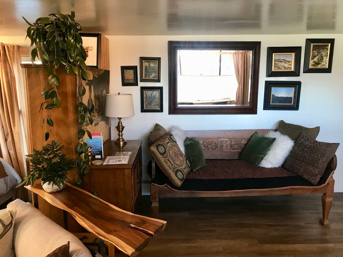 Nuestra acogedora habitación de hotel privada orientada al sur se encuentra en la base de la silla 7, recibe un amplio sol y está a pistas de esquí. Se encuentra en el corazón de la ciudad y a poca distancia a pie de Telluride Town Park y Main Street, donde encontrarás bares, tiendas y restaurantes locales. Esta cálida y pequeña suite incluye una pequeña cocina y una bañera de hidromasaje compartida (cerrada hasta el 30 de octubre) situada en el río San Miguel, donde puedes disfrutar del cielo nocturno de Colorado o las serenatas del arroyo. Lic. 895