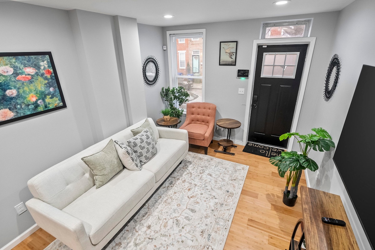 This quiet 2-bedroom townhouse is perfect for your Baltimore stay! Located near M&T Bank Stadium, Oriole Park, Top Golf, Federal Hill, and the Inner Harbor, it sleeps 6 comfortably and offers 2.5 bathrooms. With an office space for work and keyless entry for convenience, it's corporate-friendly and ideal for travel nurses, families and friends. Whether you're here for a game or to explore the city’s top attractions, this modern townhouse offers both comfort and prime location. Book now!